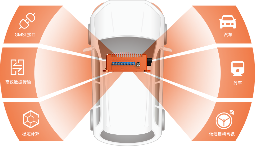 讓邊緣計算設備具備垂直行業、專業應用的特點,適應該應用場景的特殊需求。如,為汽車、列車等應用場景設計了帶有GMSL接口的計算設備,為車內高速數據傳輸和穩定計算提供基石,并將該接口引入到同樣需要高穩定性和較遠距離傳輸的低速自動駕駛和交通管理等場景。